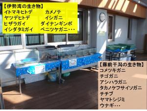 「こども水族館」では、藤前干潟や伊勢湾の生き物が生体展示で紹介されており、多くの家族連れを中心に賑わっていました。特に生き物に触れ合えるタッチプールは子供達に大人気で、初めて目にするヒトデや貝、大きなヤドカリに触れ、楽しんでいる様子でした。