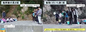 はじめて前浜調査に臨む後輩へ、「今日は違うものも見つかるかもしれないから、がんばって探してみてね」と、先輩としてうまくリードしてくれました。