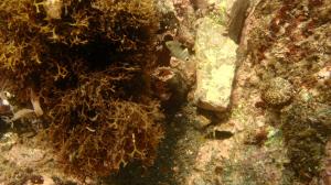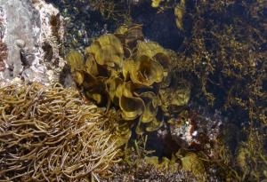 【ウミウチワ(中央)など。春先はカラフルな海藻であふれます♪】