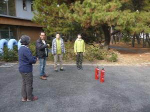 今回の訓練では、消防署への通報者、避難誘導者、初期消火者などの担当を決め、来館者の避難、誘導及び消火器の使用方法を習得しました。