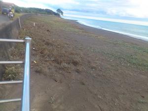 前日の台風の影響で堤防まで砂や海水が押し寄せ、景色はすっかり一変。