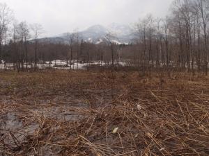写真では見えにくいかもしれませんが、すでに白い仏炎苞のミズバショウが出始めていました。