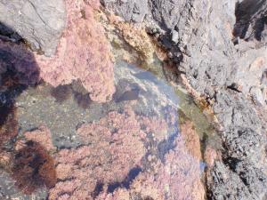 潮が引けば、浜の南側にできるタイドプールで磯遊びも楽しめます♪