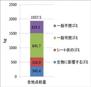 【鳥獣保護区内で回収されたゴミの総量(全34回調査)】