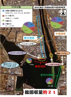 広く分布していました。プラスチック破片は、藤前地区及び