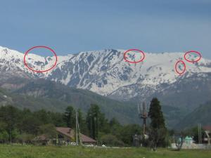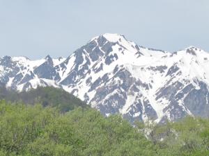 紹介する雪形の一つ目は、上の写真の白馬岳から北東へ続く、小蓮華山から乗鞍岳(白馬乗鞍岳)にかけての斜面で見られるものです。ここでは、いくつかの雪形を見ることができます。