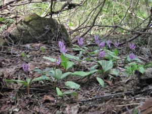 残雪近くで見られたカタクリです。消雪の時期が遅い分、カタクリの開花も遅くなったようです。
