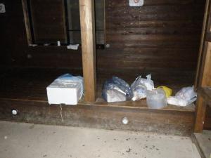 また、5月10日に別のお仕事で巡視に向かった際に、避難小屋にて大量のゴミと、忘れ物か、故意に置いていったものか分からないものがありました。