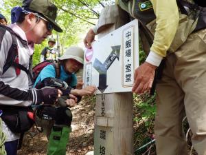 【道標を持って張り切っています】
