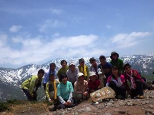 山頂では快晴であったためか、たくさんの登山客で賑わっていました。