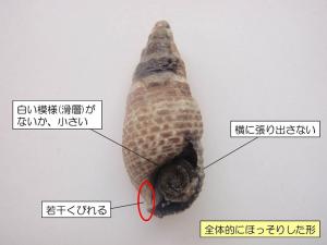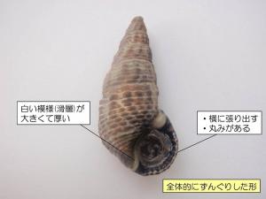 注目すべきは、殻口(かくこう・殻の開けた穴の部分)の形なのですが・・・