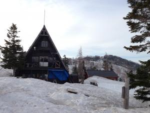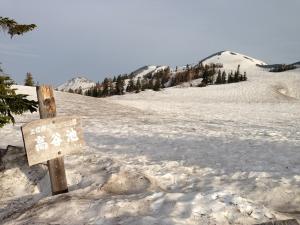 その上のオオシラビソの樹林帯から富士見平、高谷池ヒュッテ、そして山頂付近までは一面の残雪で覆われている状態でした。装備はアイゼン、ピッケル、軽アイゼン、ストックを準備し、中でも軽アイゼンはかなり活躍してくれました。調査後の妙高高原は夏を思わせる暖かさが続いていますが、6月いっぱい位は雪上を歩く区間が残ると思います。