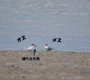 庄内川河口干潟では、コアジサシの雄が捕らえた魚を
