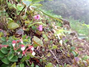 アカモノとイワカガミの群落やシラネアオイ、マイヅルソウなどの花々に癒やされながら、
