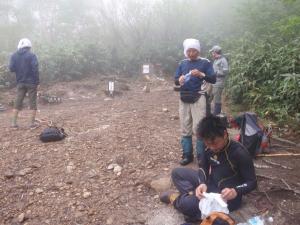 5班中3班が早朝の燕温泉に集合し、妙高市の方から説明を受けた後それぞれのルートの点検に出発です。