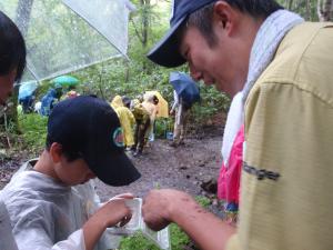 「探せ!サンショウウオ!水源の森 探検隊」と題し“水”をテーマにいきもの調査を行い、29名の子どもたちが、くろレンジャー(万座自然保護官の愛称)のお仕事のお手伝いをしてくれました。
