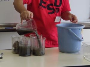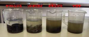 ヤマトシジミやソトオリガイの入ったビーカーの水が