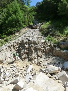 ・槍沢と一ノ俣沢が合流点より少し上流側の斜面が、今年6月の豪雨により崩れました。