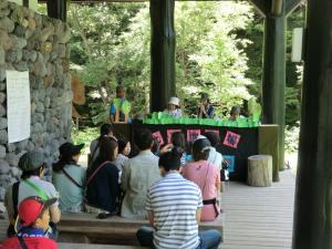 8月の利用者が集中する期間にあわせて、ビジターセンターを拠点に上高地パークボランティアが様々な活動を行っていました。