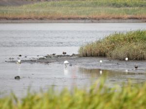 【干潟には、サギやカルガモなども集まってきます(8月23日撮影)】
