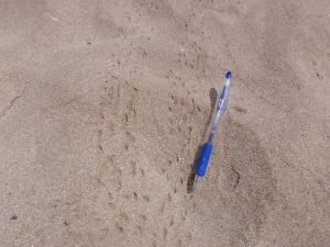 21日(水)、志摩市の海岸にて、たくさんの子ガメの足跡を発見しました!