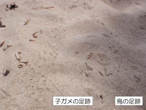 すぐそばに歩き回る鳥の足跡があったり・・・