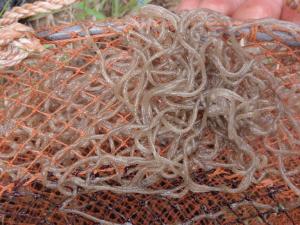 さらに、再生干潟側に仕掛けたカゴには、なんとアメフラシ!