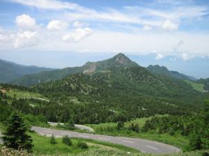 さて、上の写真で渋池の奥に見える山は横手山(標高2,307m)です。志賀高原で2番目に高い山ですが、リフトに乗れば、山頂までほとんど歩くことなく行けます。そして、天気が良ければ山頂から北アルプスなどの山並みを展望することができます。
