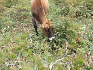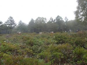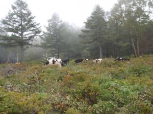 作業の合間、高原をのんびり歩くウシさんに癒やされました。