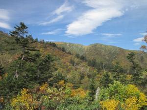 <新潟県側の標高1,600m付近から見た紅葉>