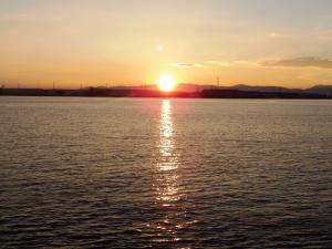 【これからの季節は、稲永ビジターセンター前から見る夕日もオススメです(10月10日撮影)】