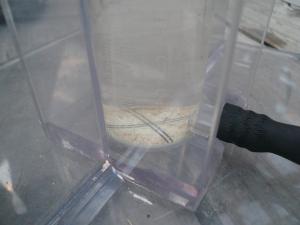 【底に書かれた十字の二重線がはっきり見えるところまで水位を下げます】