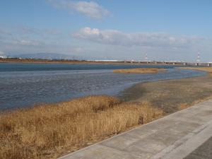【庄内川沿いにある干潟】