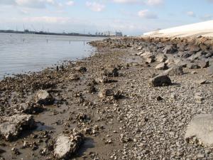 次に、飛島村の一角に存在する干潟、通称「飛島干潟」にやってきました。周辺は工場地帯となっており民家はほとんどありません。