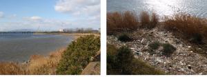 ヨシ原に目を向けると多量の漂着ゴミが確認されました。