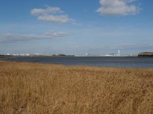 良好なヨシ原が広がっており、干潮時には広大な干潟が