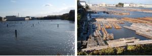 【工場地帯の中にある貯木場】