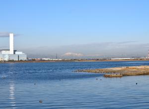 【稲永ビジターセンター前より白い伊吹山を微かに望んで】