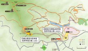 横山展望台を利用するには、下図の通り、2つの駐車場があります。