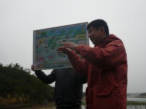 収穫の前に、志摩市の職員さんから“アオサ養殖の流れ”を教わりました。