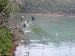 1月上旬に再生干潟に張っていただいたアオサノリの粗朶。(過去の記事参照)