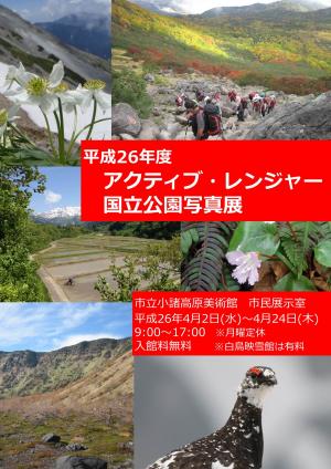 さて、平成20年度より行っている長野自然環境事務所「アクティブ・レンジャー国立公園写真展」の平成26年度最初の開催地は・・・万座自然保護官事務所管内の小諸市にある“市立小諸高原美術館”です!