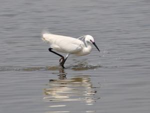 【シギチだけでなく、夏羽のきれいなコサギも見られます】