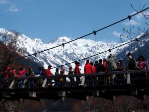 上高地の昼間は徐々に暖かくなってきておりますが、朝晩や天候が悪くなると急に冷え込むこともあります。また遊歩道などは雪が溶けて、足下などが悪いところもまだ残っています。防寒着や履き物などをよく準備をして、春の上高地にぜひおいでください。