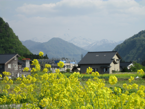【春の白山】鳥越地区にて撮影。かすんでしまっていますが、白山が見えるお気に入りポイントの1つです。