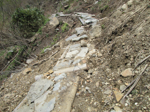 砂防新道の下り迂回路が崩れているので、看板を設置しました。降雨時など滑りそうな感じです。