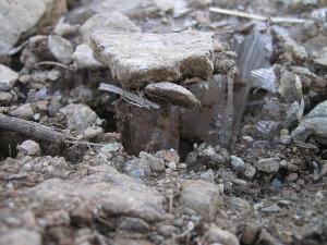 数センチの大きさの礫(れき)が霜柱により持ち上げられています。