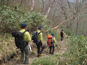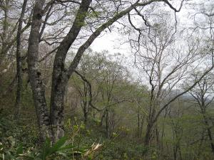<下るにしたがって植物季節が変わっていきます。この辺りではブナが葉を出し始めたところでした。>