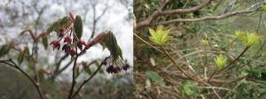<左:ハウチワカエデの花、右:リョウブの若葉。>