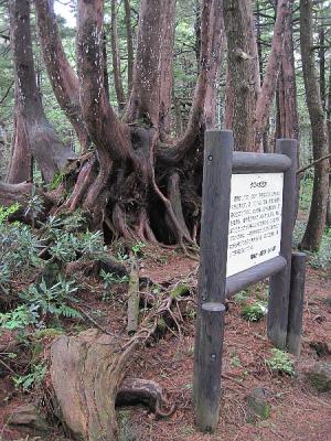 <このようにたくさんの幹を分けた株も見られます。なぜ、こうなったのでしょう。答え(仮説)は現地の解説板でどうぞ。でも、急ぎ知りたい方のため末尾に解説板の写真を載せます。>